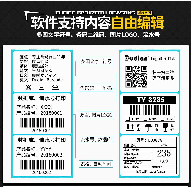 佳博GP3120TU熱敏條碼打印機(jī) 不干膠標(biāo)簽機(jī)服裝吊牌價(jià)格貼紙 超市收銀奶茶手機(jī)藍(lán)牙二維碼商食品面包月餅倉庫